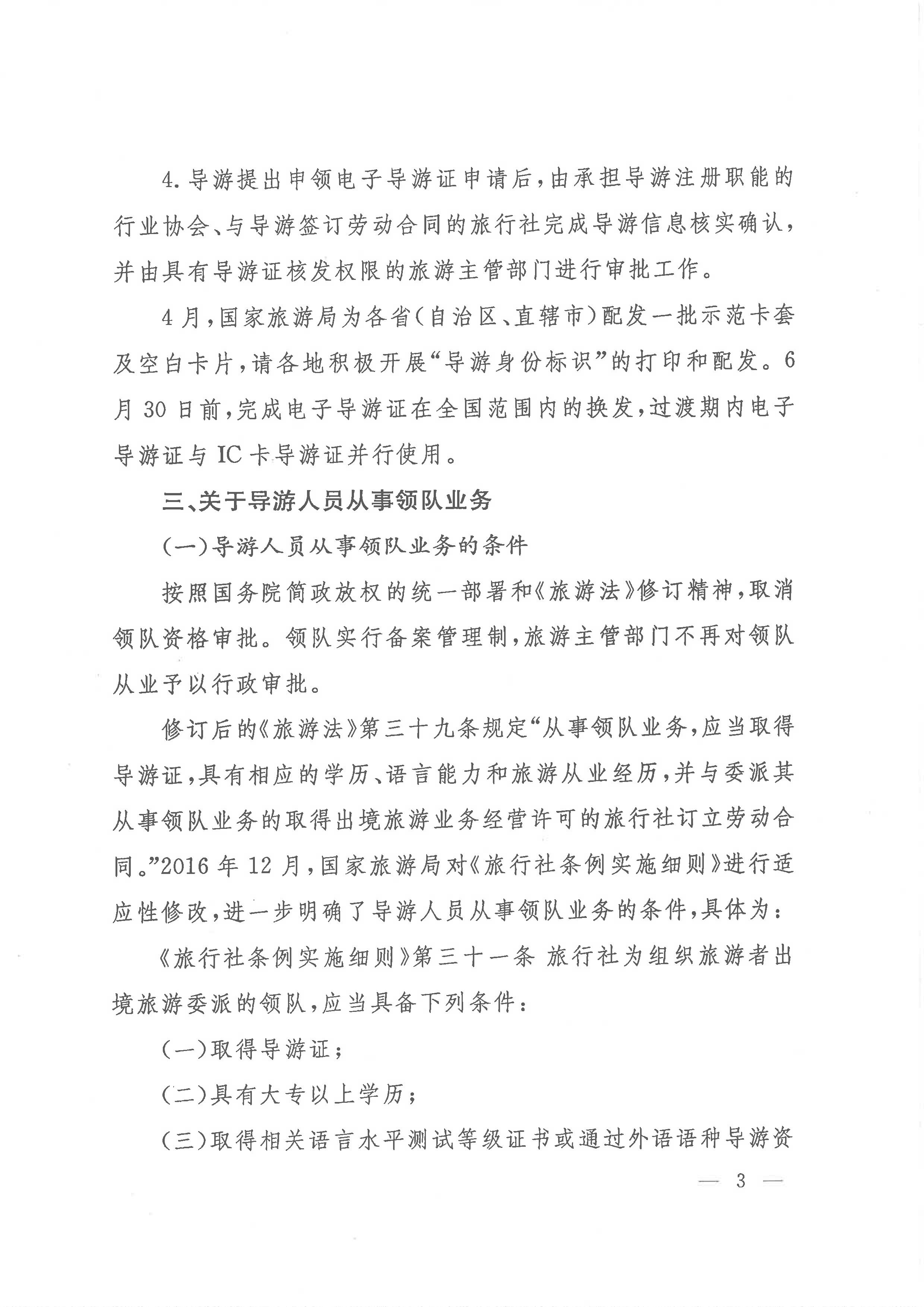 為全面推進(jìn)導(dǎo)游體制改革,去年5月以來,國(guó)家旅游局正式啟動(dòng)在廣東、江浙滬的線上導(dǎo)游自由執(zhí)業(yè)試點(diǎn)工作以及四川成都等地的線上線下導(dǎo)游自由執(zhí)業(yè)試點(diǎn)工作。為配合做好相關(guān)工作,正式展開電子導(dǎo)游證換發(fā)工作。