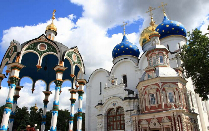今天部分拍攝點包括謝鎮(zhèn)民風特色,修道院建筑精華及藝術杰作。【圣三一修道院】*(內(nèi)觀,約1.5小時)是東正教最古老的教堂建筑群之一,里面有許多著名的俄羅斯建筑古跡。其中最古老的是三位一體教堂,里面安放著謝爾蓋院長的棺木。周圍坐落著圣靈降臨教堂、圣母升天教堂、圣謝爾蓋教堂、左希姆和薩瓦提等教堂。它的建筑精華包括:用白色半寶石砌成的圓頂、黃金雕成的壁上橫木、由魯伯里歐夫所繪圣像裝飾而成的圣像門等,都是令人贊嘆的藝術杰作。以畫《三位一體》而出名的俄羅斯畫家安德烈·魯布廖夫的壁畫作品一度收藏在教堂中,現(xiàn)在則收藏于莫斯科的特列基亞科夫畫廊。午餐特別安排品嘗特色俄餐,稍后入住賓館。下午客人可以自由活動,體驗小鎮(zhèn)的民風特色,感受無邊的美景。