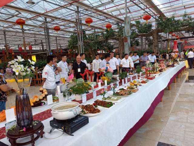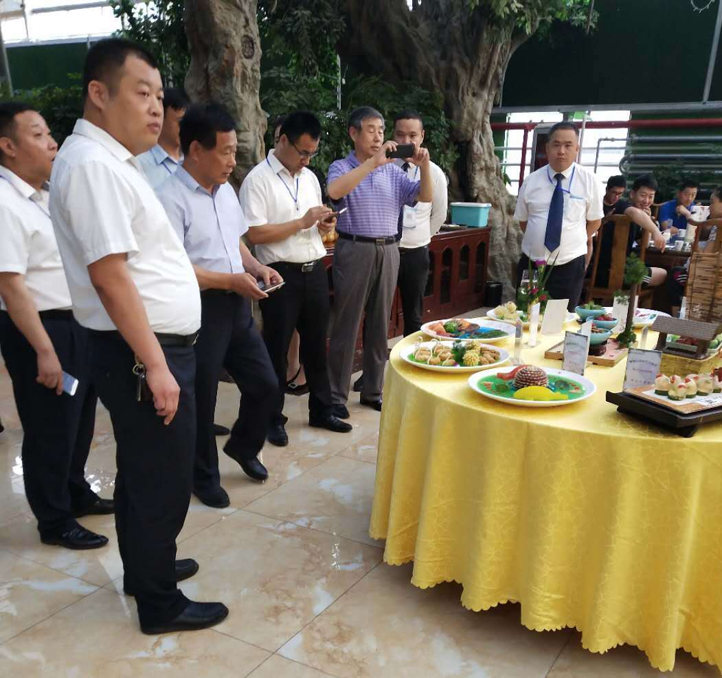 莘州集團旗下中農(nóng)酒店管理公司總經(jīng)理李傳輝,誠邀各位參會嘉賓參觀生態(tài)園廚藝交流會,介紹生態(tài)園特色,欣賞精美菜品。各位參展嘉賓為廚藝交流會表示贊許。