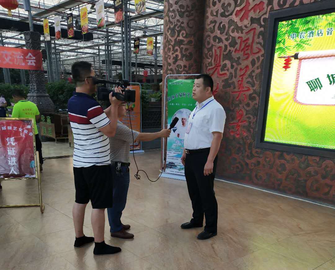 中農(nóng)酒店管理公司總經(jīng)理李傳輝、現(xiàn)代農(nóng)業(yè)生態(tài)園餐廳總廚商平勇在活動現(xiàn)場,接受莘縣電視臺記者專訪。李總向記者詳細闡述組織廚藝交流會的意義,這是聊城市同行餐飲人的集會,有利于增進互相的了解,促進共同進步,共創(chuàng)更加輝煌的酒店餐飲業(yè)。商廚向記者介紹了餐飲中菜品的相關情況。