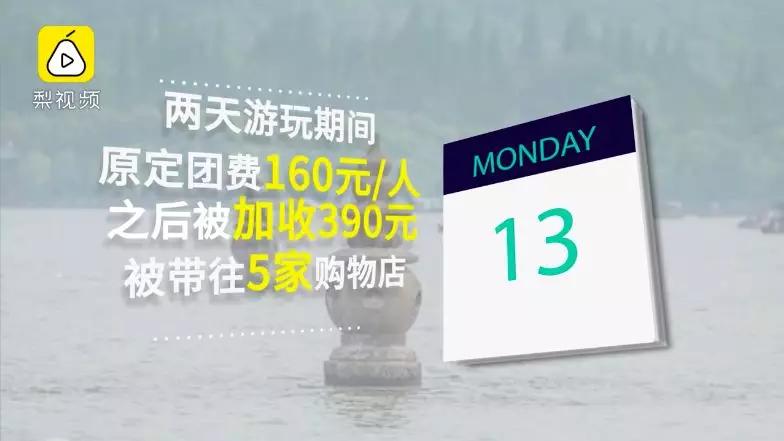 8月13、14日,梨視頻拍客報了蘇杭兩日游,卻遭遇中途加收費,不購物不讓出門,兩天時間大部分都耗在了購物點……