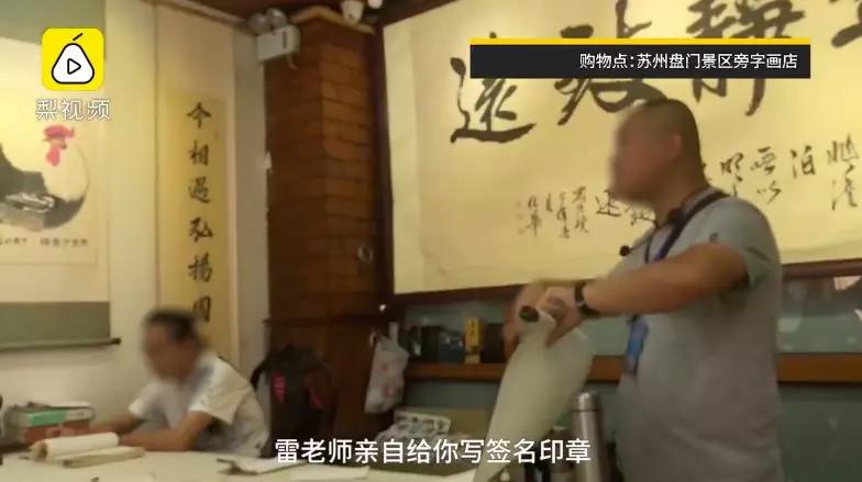 在購物點蘇州盤門景區(qū)旁字畫店里,游客們又被忽悠買來歷不明大師的字畫。