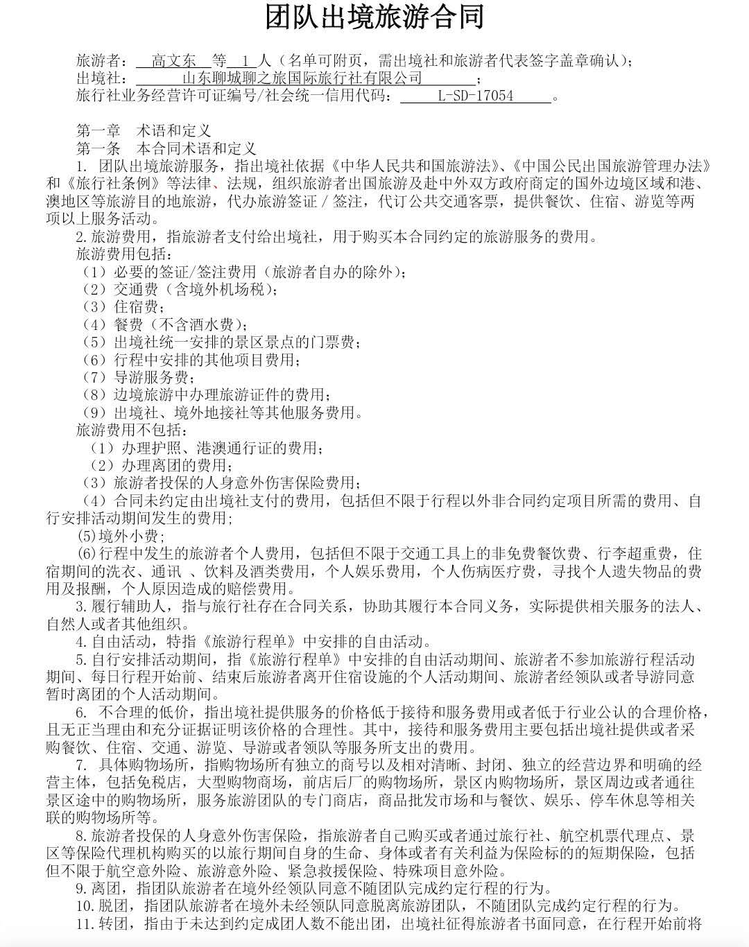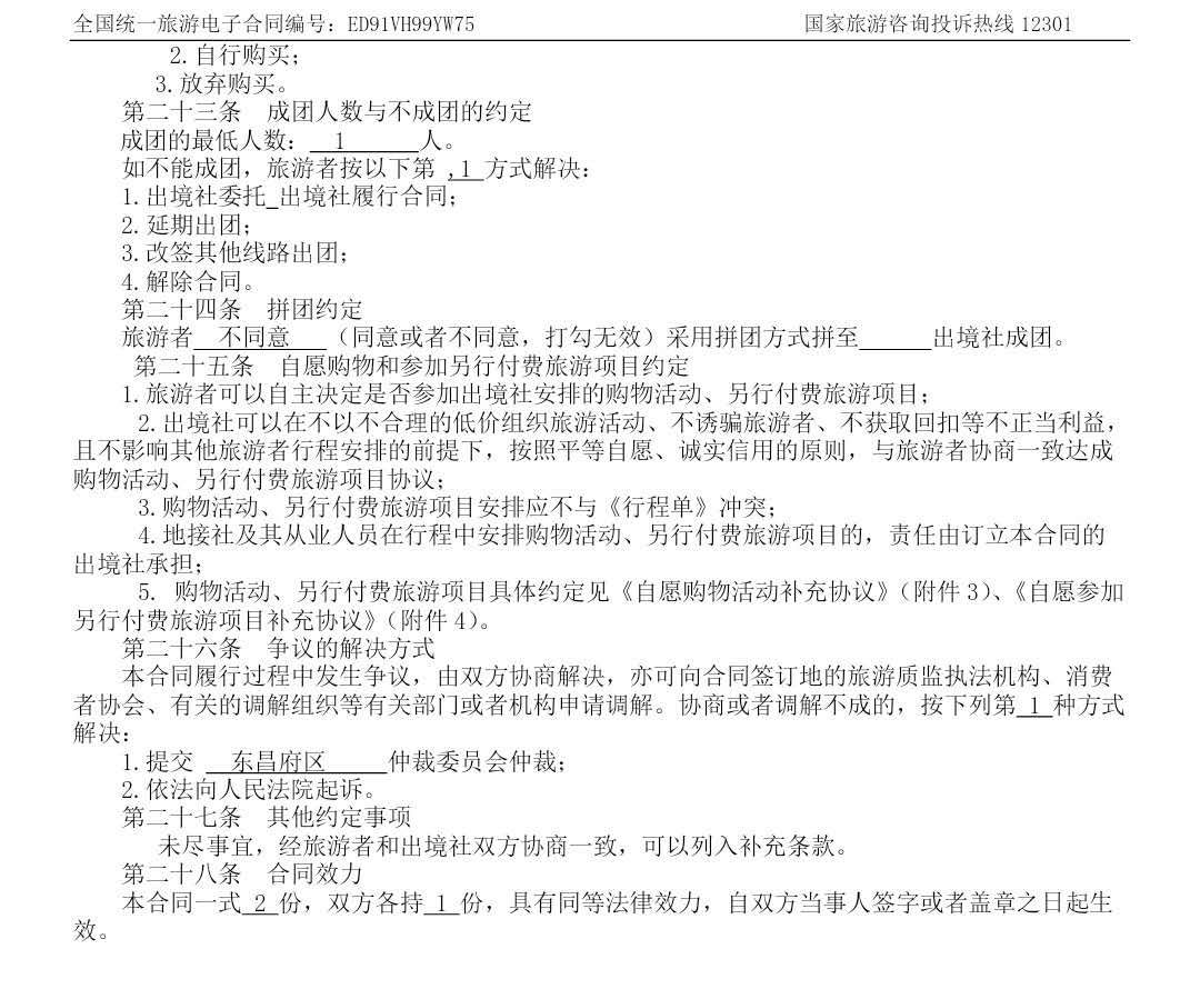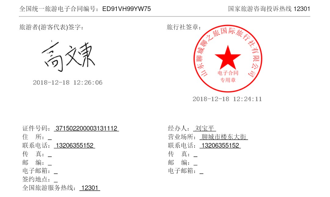 聊之旅國際旅行社電子合同開啟