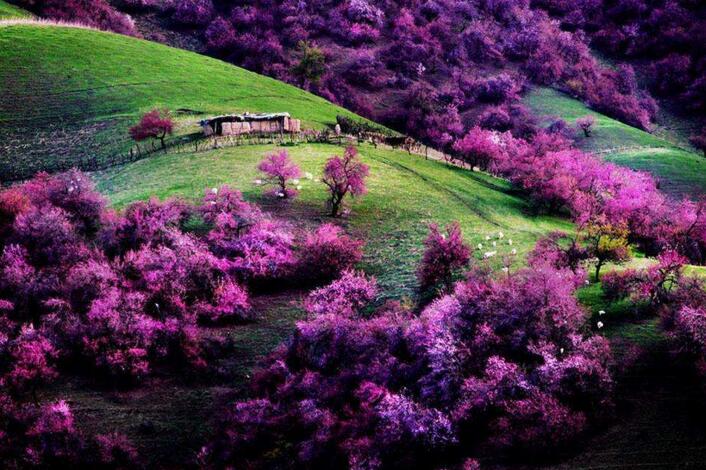 早餐后乘車前往參觀【吐爾根杏花溝】。(賞花時間根據(jù)當(dāng)?shù)氐臍夂蚝吞鞖鈼l件決定,敬請諒解)每年四月份起,伊犁河谷開始進(jìn)入一個美麗浪漫的季節(jié),山上、草原上的果花、草花次第盛開,美不勝收!最先盛開的就是野杏花。那個季節(jié)野杏花綿延十幾公里,粉紅的、雪白的杏花把一個個山頭妝扮起來,牛羊似珍珠灑落在花林間、草坡上。最震撼是這種自然、原生態(tài)的壯美,一個花海的世界、一個迷人的仙境!抵達(dá)新源用晚餐,晚餐后入住酒店。