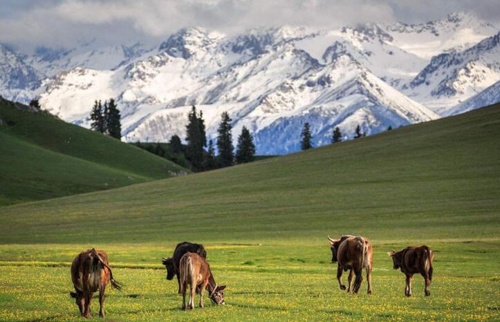 早餐后,前往特克斯。新疆伊犁谷地西的特克斯,位于昭蘇縣境內(nèi),是新疆最美的草原,這里的哈薩克族、柯爾克孜族風(fēng)情獨特,山清水秀,人文濃郁。特克斯縣縣城是中國唯一的【八卦城】,建筑風(fēng)格獨特,后游覽【喀拉峻草原】位于特克斯縣南喀拉峻山,距縣城直線距離約30公里,有簡易公路相通。海拔1600~2800,喀拉峻系哈薩克語,意為"黑色莽原"??菰L(fēng)景獨特,草豐林茂,主要指闊克蘇河以東,喀甫薩郎河以南,以喀拉峻山為主體,南接瓊庫什臺,包括瓊庫什臺,克什庫什臺和庫爾代峽谷,面積約759平方公里。喀拉峻草原是典型的山地草甸類型草原,喀拉峻草原地勢起伏和緩,視野開闊,草原5~9月碧草茵茵,盛夏之際雨水豐富、日照充足,各種野花恰似點點繁星開遍山野。夏季來到喀拉峻草原,如同步入花的海洋,暑氣頓消。晚住昭蘇是天馬——伊犁馬的故鄉(xiāng)。