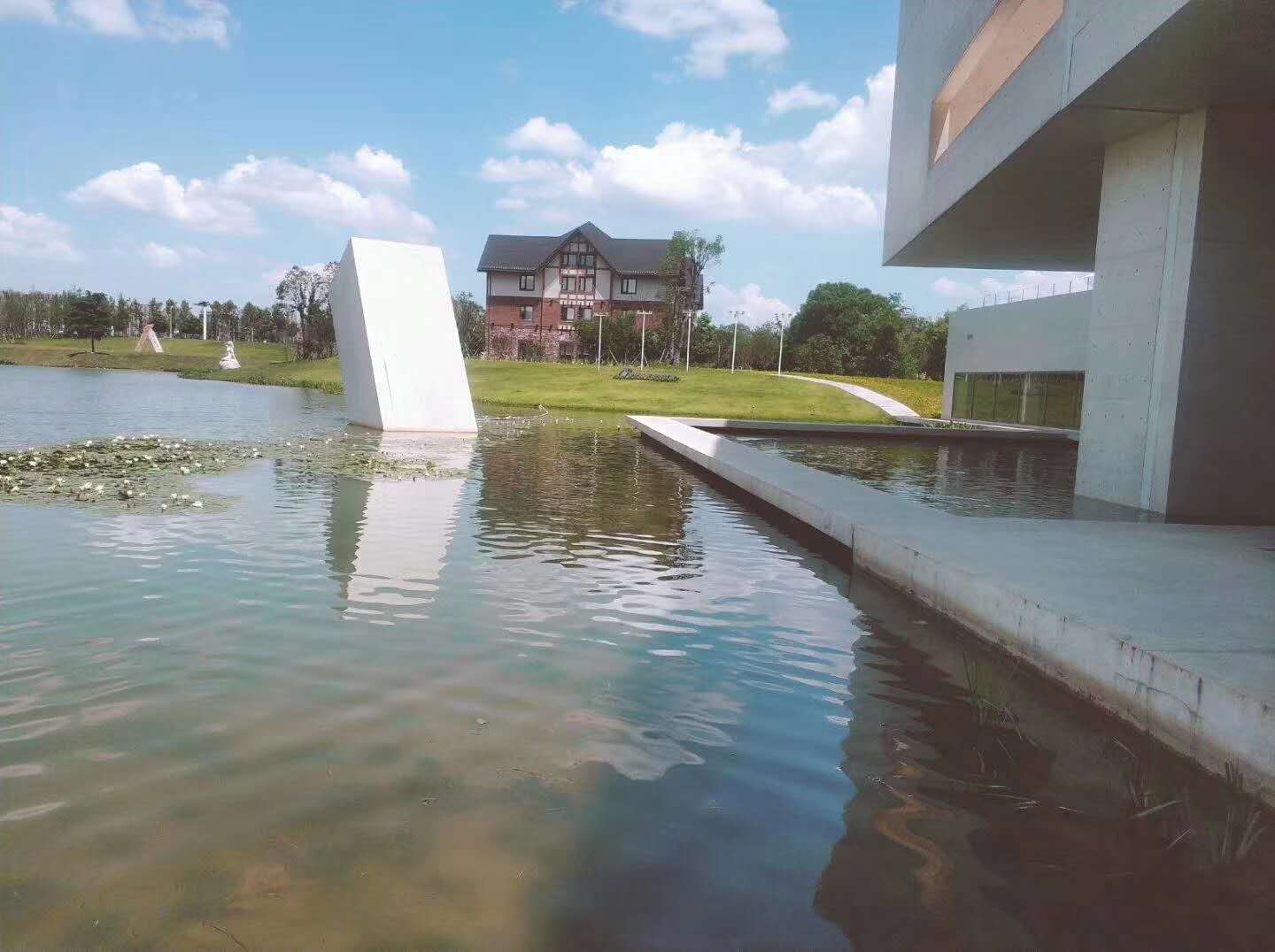 極簡的米白色外觀,建筑設(shè)計感十足,每一個角落都是藝術(shù),不管怎么拍都很容易出片。極簡式的幾何形建筑棱角分明,加上水面的倒影,仿佛模糊了虛與實的界限。再加上性冷淡的色彩,拍出來的照片想不好看都難。