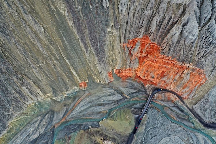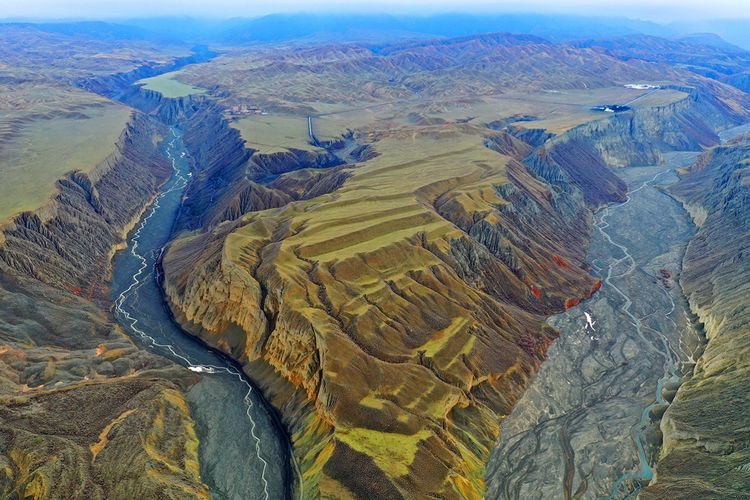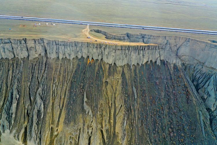 此處還未開發(fā)為景點(diǎn),本地人知道也不多,偶有自駕游人,拍攝危險(xiǎn)系數(shù)較大,站在山頂往谷底看,背脊發(fā)涼。此照片系用無人機(jī)拍攝。