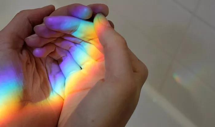 相信你也看過不少浮著小彩虹的照片,這種效果其實就是利用三棱鏡做出來的。