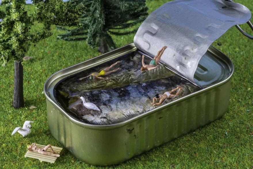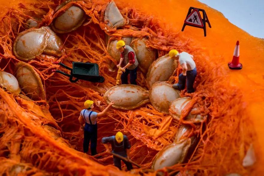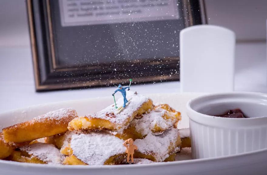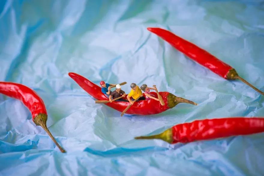 來自匈牙利布達(dá)佩斯的美食攝影師彼得近三年改變了以往的攝影風(fēng)格,他利用微縮模型、食物和日常用品搭配組合,創(chuàng)造了一個(gè)名為“Tiny Wasteland”(袖珍荒原)的攝影系列。