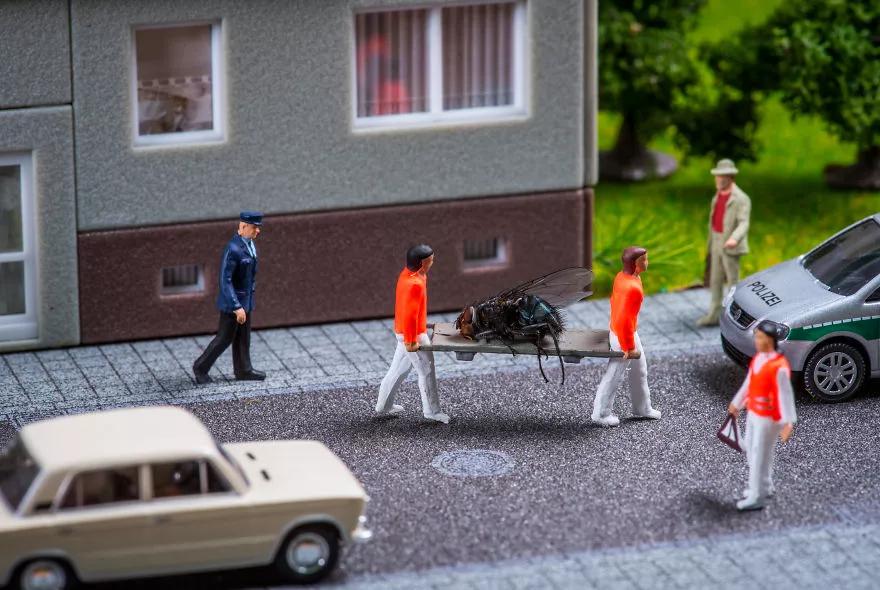 即使明明知道這些照片是“假”的,只是在用小模型在模擬現(xiàn)實(shí)生活場(chǎng)景,可因?yàn)閿z影師奇趣無限的想象力,也會(huì)讓觀眾忍不住一張張翻下去,看看下一張又會(huì)出現(xiàn)什么意料之外的場(chǎng)景。