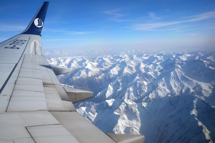 機翼下,天山山脈一望無際。
