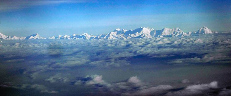 冰山高峰刺破云層,蔚為壯觀。