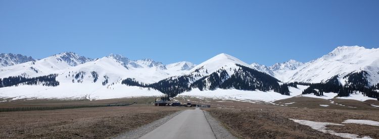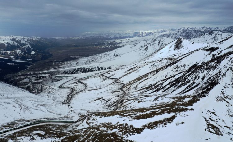 從新源縣到庫爾勒機場的途中,途徑大坂,大巴車盤旋翻越天山頂峰,終年積雪的山峰惟餘茫茫。