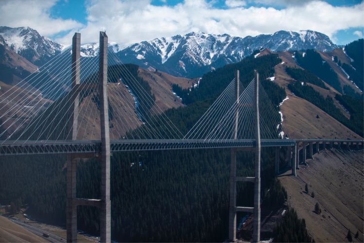 但是,新疆面積雖大,但卻大部分都是山、沙漠、戈壁灘和河流湖泊。阿爾泰山雨雪豐富,森林密布,草原繁茂。橫亙新疆中部的天山山脈,峰巒重疊、氣派雄偉,總長2500公里。昆侖山脈山勢高聳巍峨,平均山脊線海拔超過5000米,最高的喬戈里峰海拔8611米,位于中國與巴基斯坦邊界上,為世界第二高峰。不到新疆, 不知道新疆之大。我們這次從天山西麓的伊犁地區(qū)經庫爾勒到喀什以及到離巴基斯坦國境線僅130公里的塔縣,一路上山峰層疊連綿不斷,山頂白雪皚皚,或高聳入云,或白沙流淌。千姿百態(tài)的湖泊象一粒粒寶石鑲嵌在崇山峻嶺之中,或清澈見底,或冰封玉潔。