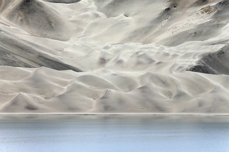 由于千百年來高原風沙的侵襲,使得沙湖周圍的山侵蝕風化成灰白色的沙子,形成了沙山。這里湖面如鏡,白沙如雪,景觀讓人震撼。