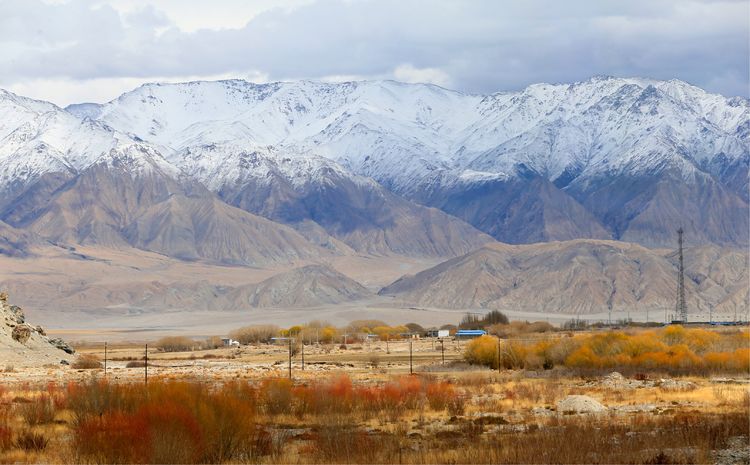 從喀什到喀什庫爾干縣沿途風景最為秀麗多姿,紅山、白雪,金黃色的草地,象珍珠一樣灑滿草地的牛羊.......