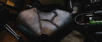 為了逃出生天,托尼用一堆破爛零件,打造出了一副鋼鐵盔甲…