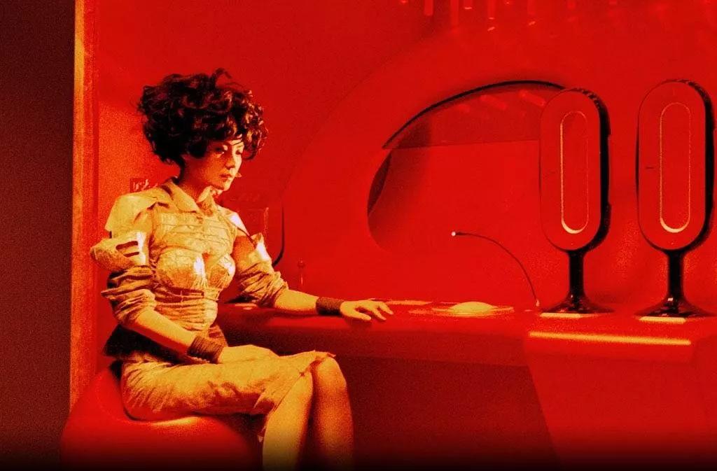 電影《2046》是一部極具觀賞性的藝術電影。氛圍的營造和情緒的流露是導演表達的關鍵。影片在影像色彩的呈現(xiàn)上,是香艷的,甚至媚俗的。大紅色窗簾、床單與明綠色墻面、長裙強對比的配色、處處流露出女主人公的都市欲望與愛恨情迷。燈紅酒綠下的鮮明色彩與暗淡的街角墻上斑駁深色的對比,塑造人物時用的深邃色調都刻化了主人公在當時環(huán)境下的生存狀態(tài):迷失自我下的內心孤寂。