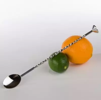 長匙的兩端功能是不一樣的,一端是叉狀,一般用來叉取櫻桃檸檬等;另一端為匙,用來攪拌混合雞尾酒原料,而匙的容量一般為一茶匙。這種是比較簡單的工具,一般家中可以湯匙代替即可。