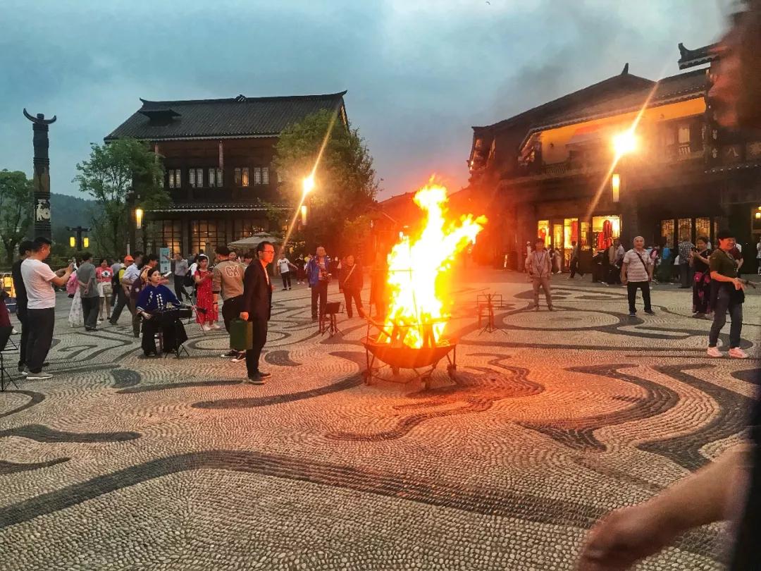 當(dāng)夜幕降臨,丹寨萬達(dá)小鎮(zhèn)上就開始熱熱鬧鬧的篝火晚會了,著盛裝的苗族姑娘牽手圍繞著篝火,翩翩的舞蹈,人們被歡樂的氛圍感染,忍不住參與其中。