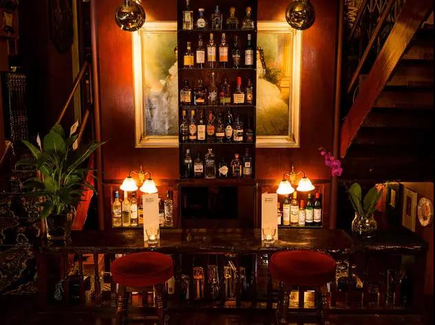 如果你是個(gè)威士忌愛(ài)好者,那你可就一定要來(lái)這里品嘗一下了。一樓有一個(gè)小銅頂酒吧,只有幾個(gè)凳子,窗戶上還有一張兩人桌子,并且這里只有威士忌。