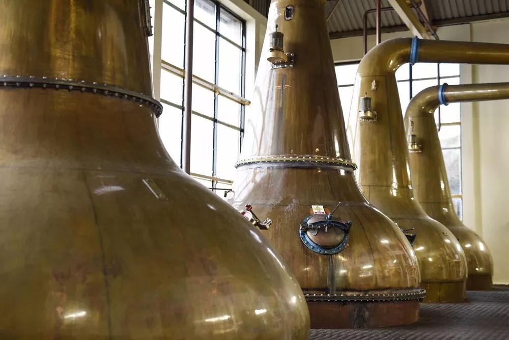 蒸餾是對發(fā)酵后的液體進(jìn)行處理的下一步。某種程度上,那些巨大、直直佇立的銅制壺式蒸餾器,和緊密成排的橡木桶一起,搭載了人們對于威士忌不絕的想象。當(dāng)我們在艾萊島依海而建的Caol Ila酒廠,看到那一整排落地窗前面海的蒸餾器時(shí),突然就覺得它們像某種威士忌的守護(hù)神一般肅穆沉靜。