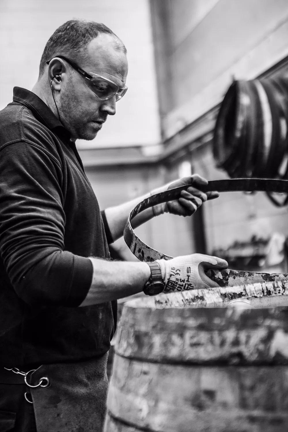 要成為Cambus廠里線上的工人,必須先在單獨(dú)的手工作坊空間,當(dāng)3年學(xué)徒,之后線上實(shí)習(xí)1年,才能成為正式工人。這里頭,無疑包含著對制桶這項(xiàng)古老手藝的崇敬與尊奉。身處手工作坊,你會(huì)感覺到回蕩在作坊內(nèi)的那種敲擊聲所包含的手工藝與體力勞作的分量。