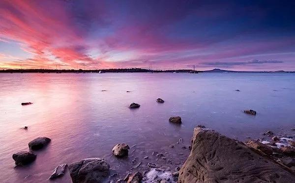 和其他風光題材一樣,在前景中安排一些有趣的元素是很有效的辦法。比如,利用一些石頭。