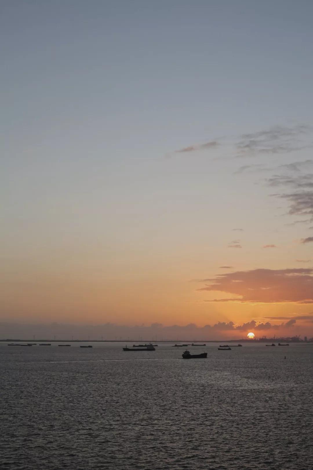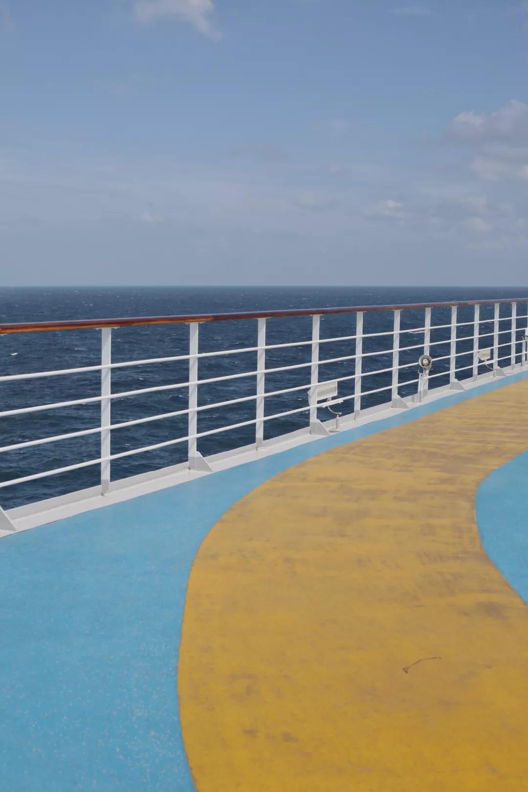在郵輪上的第五日,旅程已經(jīng)接近尾聲,早上醒來(lái)的時(shí)候,從舷窗望出去,海上的天空是將欲破曉的深藍(lán),心里突然涌起上甲板看日出的念頭。