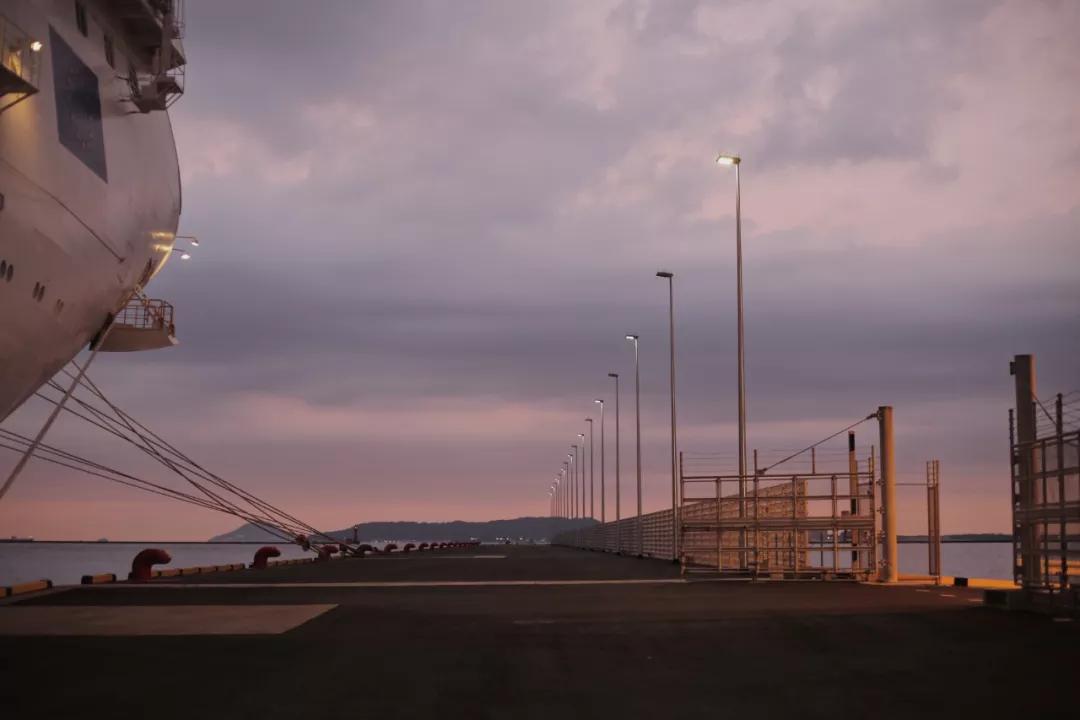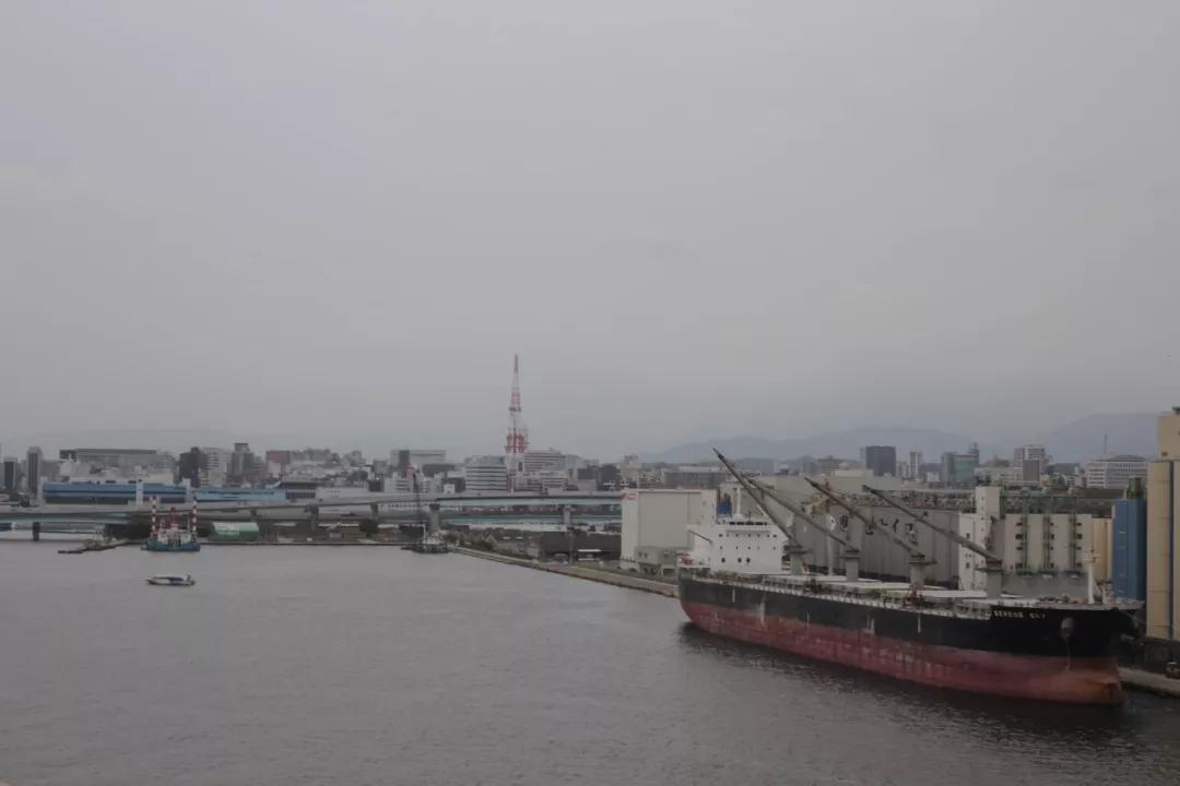 在太平洋上漂浮了兩日,我們抵達(dá)福岡博多港。集裝箱齊齊停靠在碼頭上,大小船只在水面平靜游弋,靠港貨輪發(fā)出低沉長(zhǎng)鳴,清晨的港口已經(jīng)奏響忙碌的樂(lè)章。