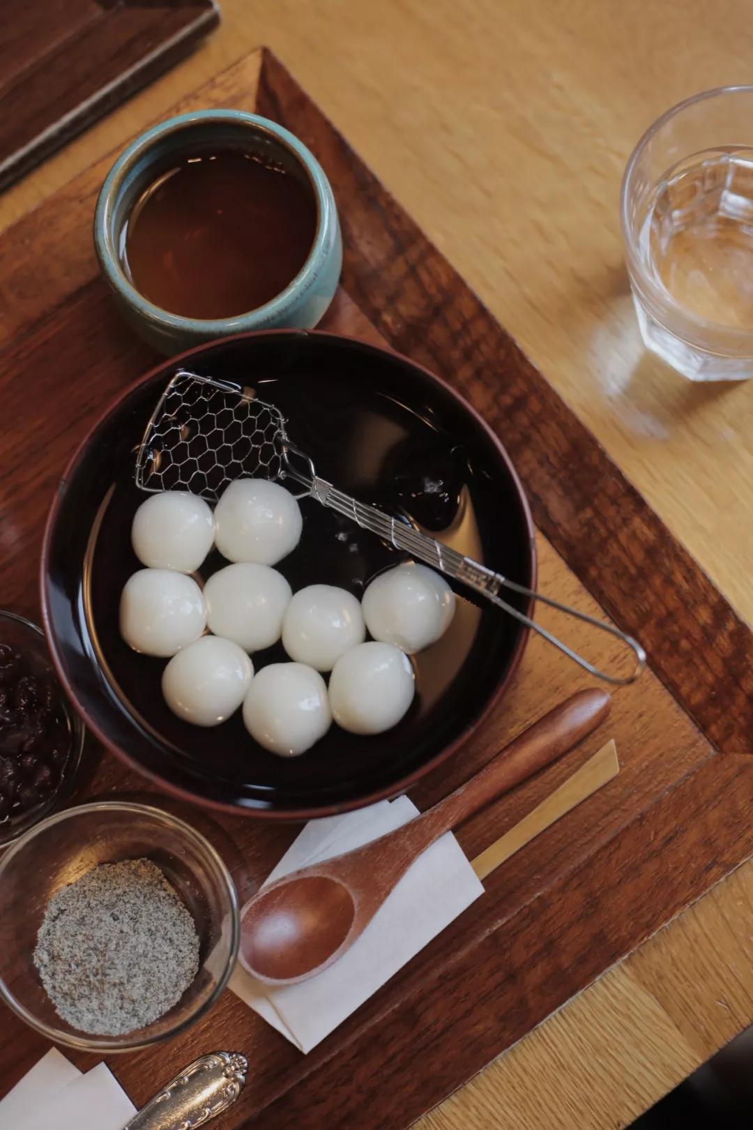 事先并沒(méi)有做功課,依著菜單上的圖例隨機(jī)點(diǎn),也不會(huì)出錯(cuò)。糯米愛(ài)好者第一時(shí)間選擇Shiratama with Hoji-Tea,著實(shí)敦樣的糯米圓子,在紅豆沙、芝麻粉與黃豆粉的包裹之下,滿(mǎn)溢著Q彈與充實(shí)。