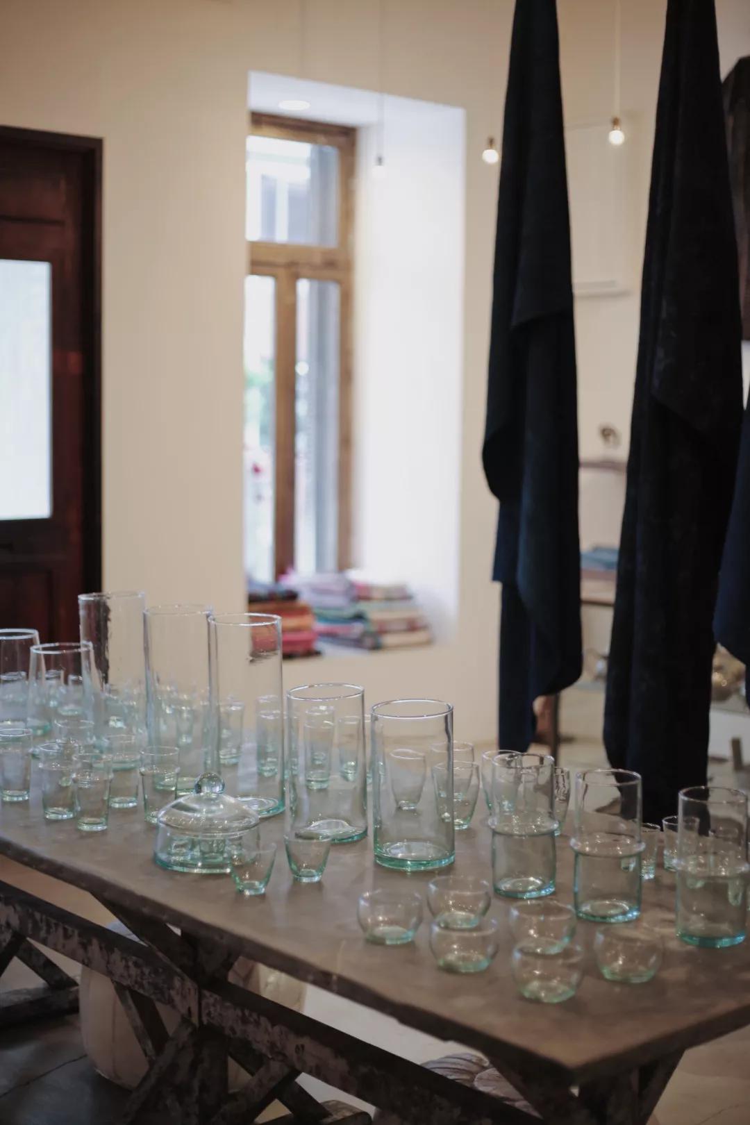 空間里迷人的老舊味道實(shí)在太吸引人,木桌上一水兒的玻璃器具,想著買(mǎi)一把花束插在里頭,應(yīng)該會(huì)很好看。摩洛哥的杯子,剛果的掛毯,中非的竹籃,印度的木工藝,充滿(mǎn)異國(guó)情調(diào)的手工制品,就這樣看似隨意地?cái)R置著,每一件都似會(huì)呼吸般充滿(mǎn)靈氣。