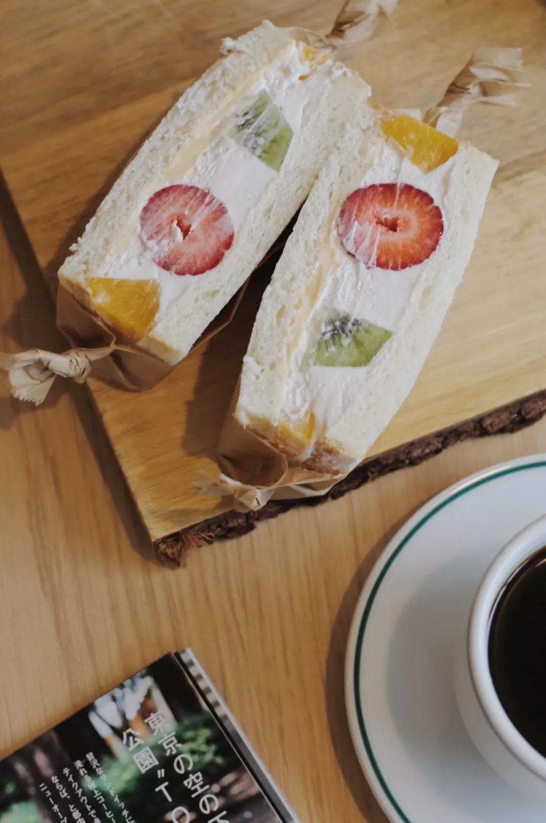 一份水果三明治,一罐葡萄柚蘇打,一杯手沖,組成一個(gè)無(wú)所事事的下午。窗外望出去是安靜小巧的街巷,街上行人寥寥,原來(lái)大家都藏在這里,愉快地輕聲絮語(yǔ)。