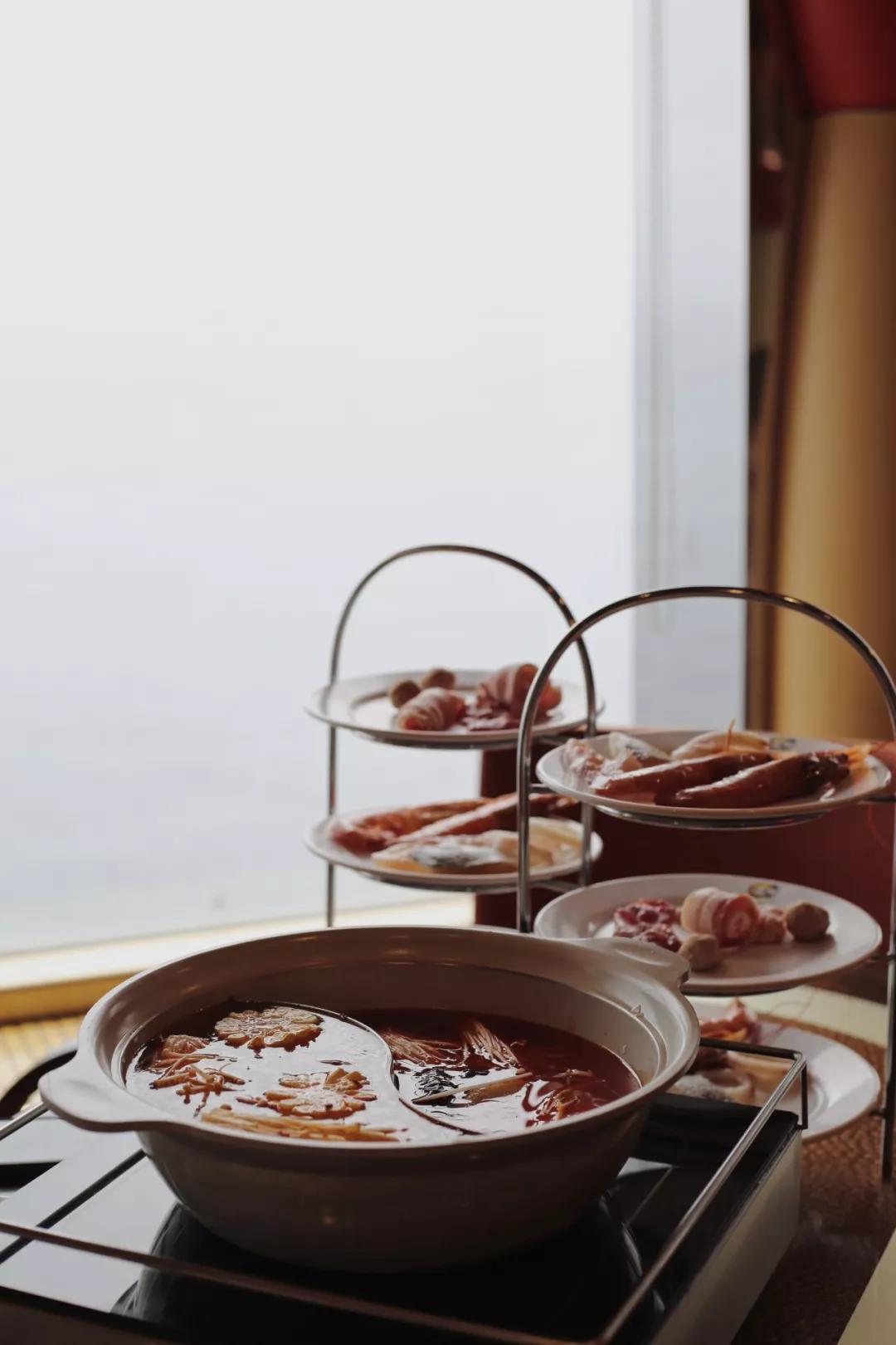 滾熱的油、辛辣的香,聽(tīng)咕咚咕咚的煮沸聲,吃進(jìn)去是咂舌的快意。熱騰騰的食物堆在一只鍋里其樂(lè)融融,抬眼一望,窗外是同樣起起伏伏的海浪,這樣的涮鍋經(jīng)歷大概也是獨(dú)一份了。