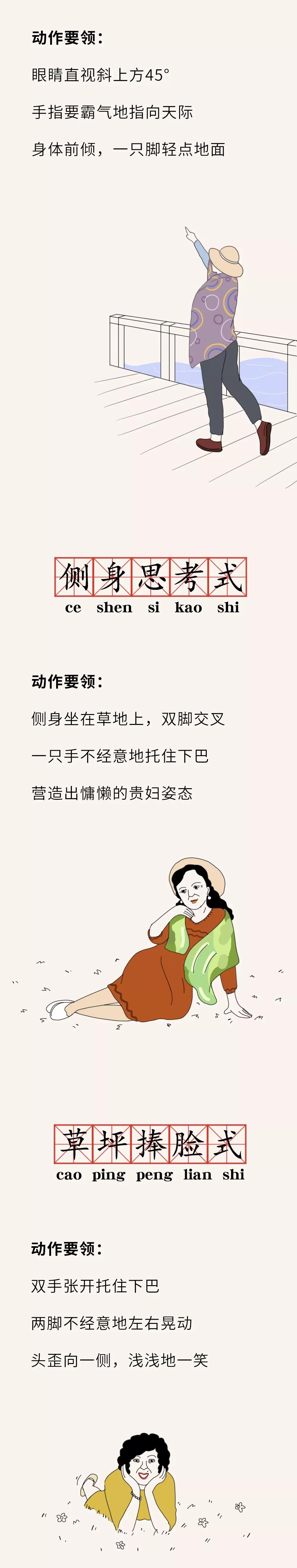 不得不佩服大媽們的新潮,當(dāng)90后拍照還在嘟嘴比剪刀手的時(shí)候,她們已經(jīng)研究出了各種奇特的拍照姿勢(shì),分分鐘亮瞎你的鈦合金狗眼。廣場(chǎng)舞可以不跳,但拍照絕對(duì)不能含糊。拍照道具有三寶:墨鏡、絲巾、太陽帽,經(jīng)典造型有三套:拈花、揚(yáng)手、翹個(gè)腳??赐晁齻兒托〗忝玫呐笥讶裾眨憧倳?huì)忍不住哼起那句:最美不過夕陽紅,溫馨又從容……