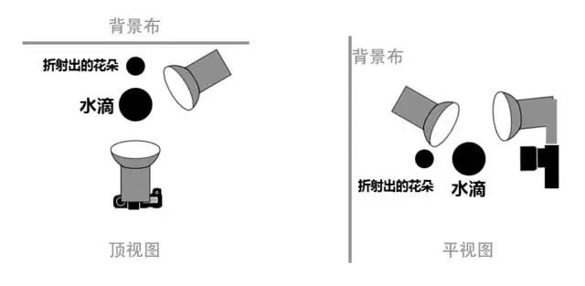 拍攝時(shí),鏡頭盡量保持平視或者是仰視,拍出來的照片會(huì)有一種身臨其境的視覺效果。因?yàn)樘幵谑覂?nèi)環(huán)境下,周圍的光線可能不太好,需要我們進(jìn)行布光,才能拍出水滴的晶瑩剔透。