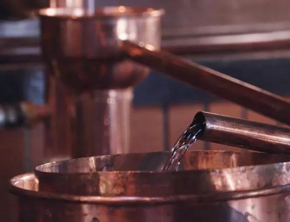 第一次蒸餾的粗酒以幾乎同樣的方式再蒸餾一次。提純酒精只是一個方面,更重要的是再濃縮香氣和進(jìn)一步去除雜味。