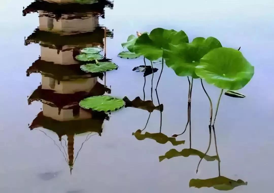 疏朗的荷塘,婷婷玉立的荷葉,微風吹來微微翻動,最具中國風的荷塘,滿是詩情和畫意,巧妙地利用水中倒影,容易構(gòu)圖一種中國畫的意味。