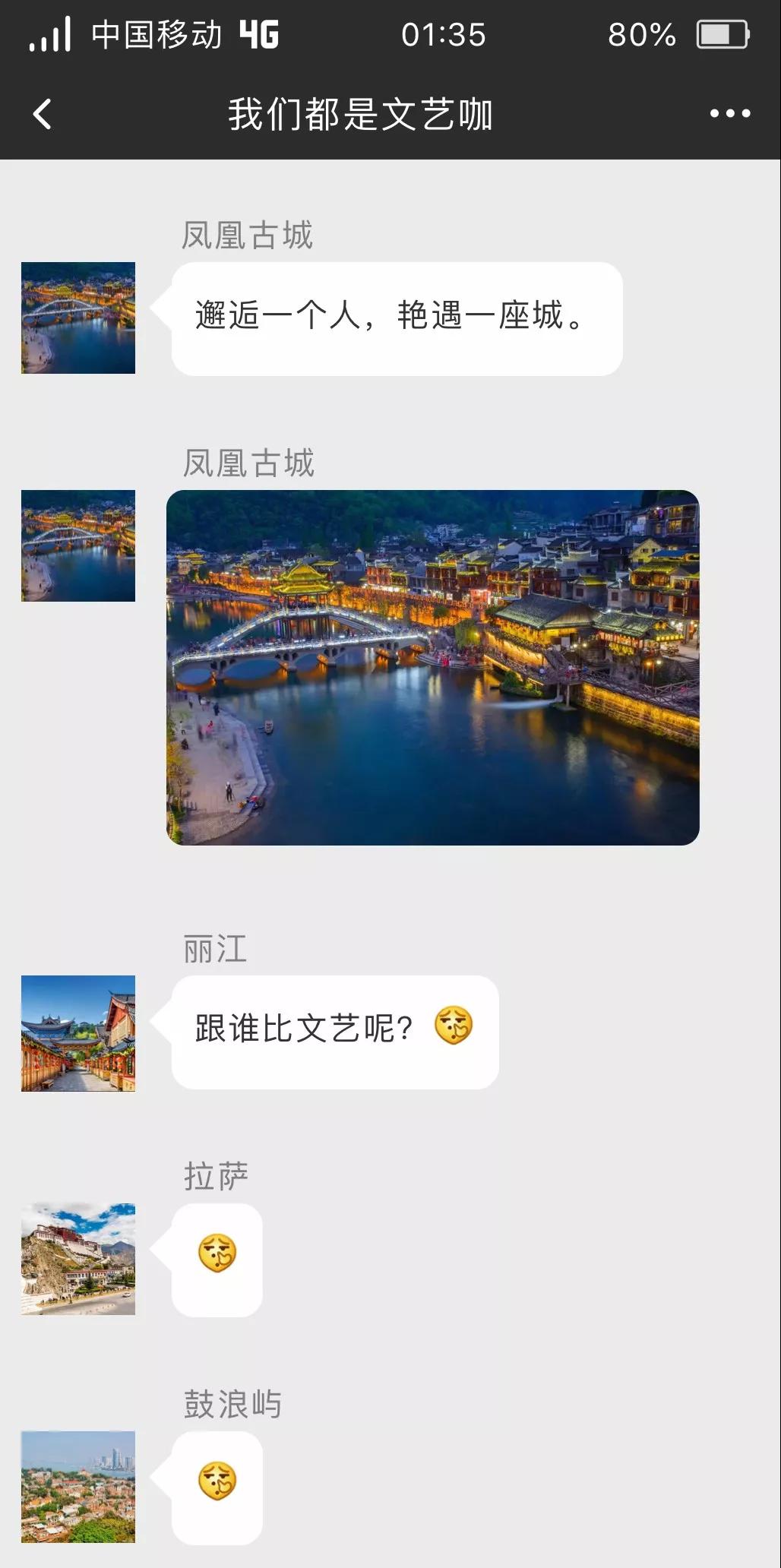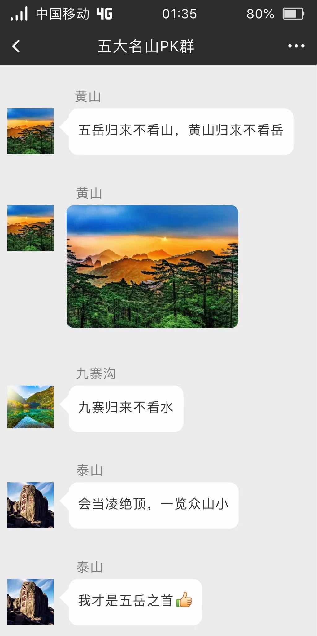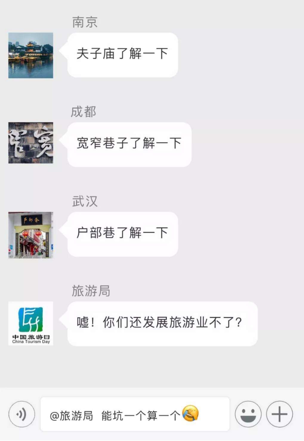 那么,一個(gè)腦洞大開的問題來了。如果把中國各大景區(qū)全部拉入一個(gè)微信群,他們會聊些什么呢?