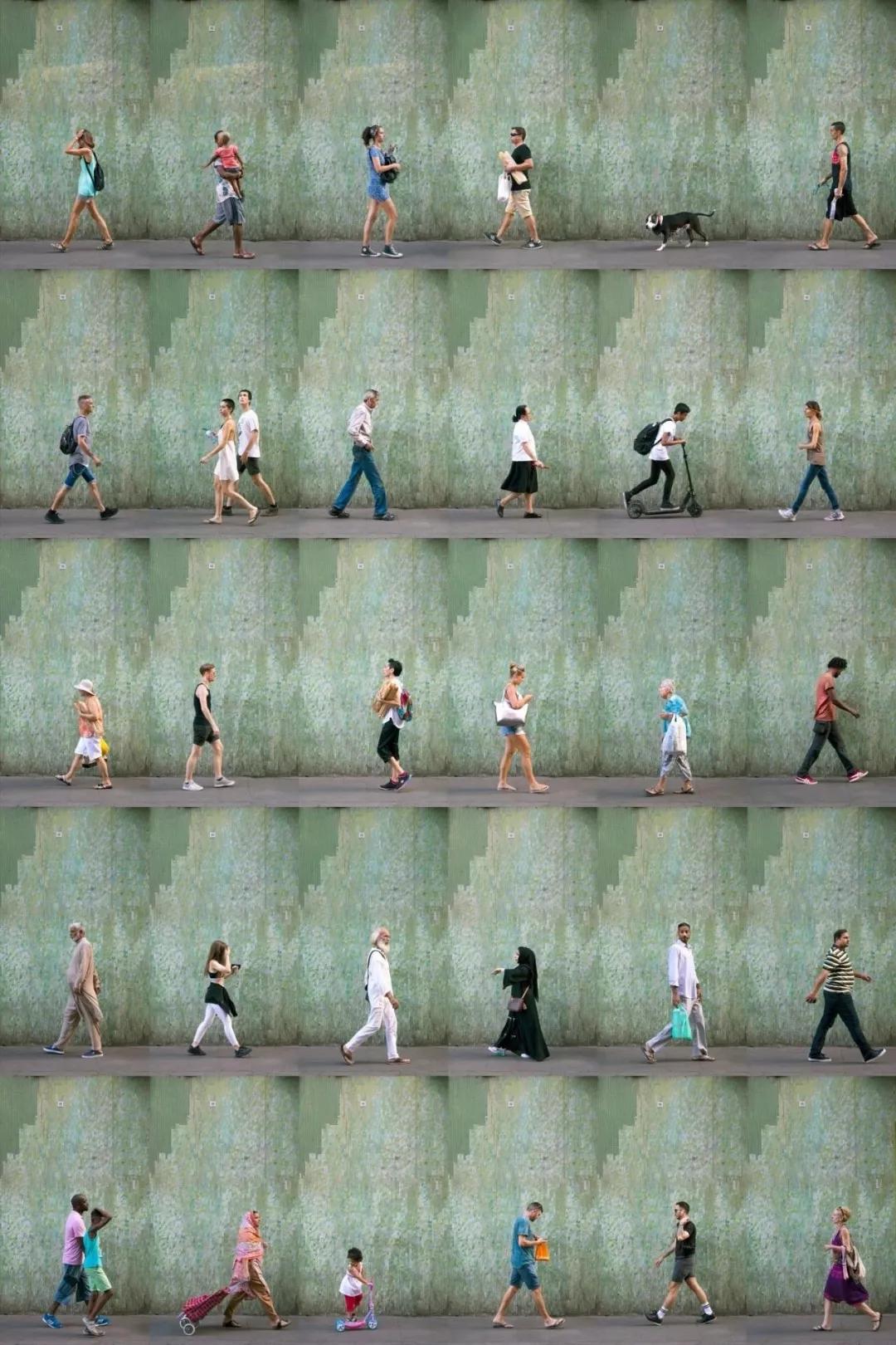 “我在城市里四處游走,有時(shí)找個(gè)地方坐上幾個(gè)小時(shí),然后在不被注意的情況下,拍下那些隨意靠墻經(jīng)過(guò)的人?!?/span>