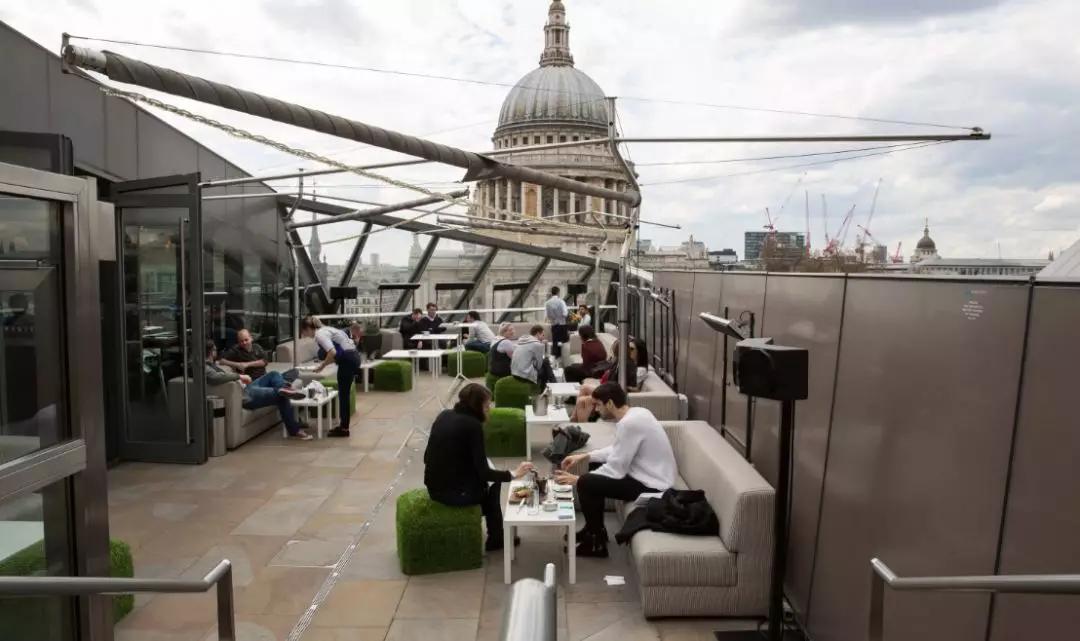 在圣保羅大教堂旁邊的One New Change購物中心頂樓,有室內(nèi)也有室外空間,白天跟晚上的氛圍不太一樣,晚上圣保羅也會打燈,晝夜都很適合來。