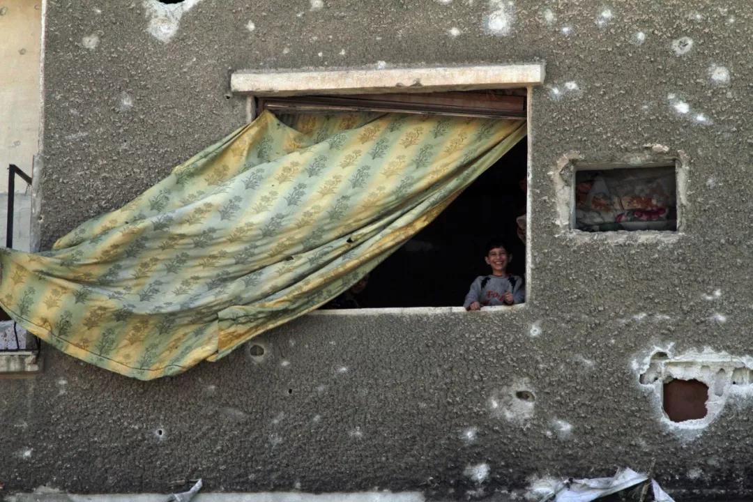 2018 年4月20日,在敘利亞大馬士革東郊杜馬鎮(zhèn),一名男孩從自家窗戶探出頭來。禁止化學武器組織(禁化武組織)21日進入敘利亞杜馬鎮(zhèn)就據稱發(fā)生的“化武襲擊”事件展開調查。