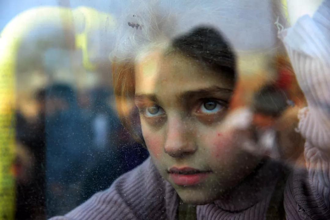 2018 年3月15日,在敘利亞大馬士革東郊,一名女孩乘車前往政府軍控制區(qū)安置點。敘利亞政府軍 15 日在首都大馬士革東郊東古塔地區(qū)收復一處要地,當地數千被困平民撤離。