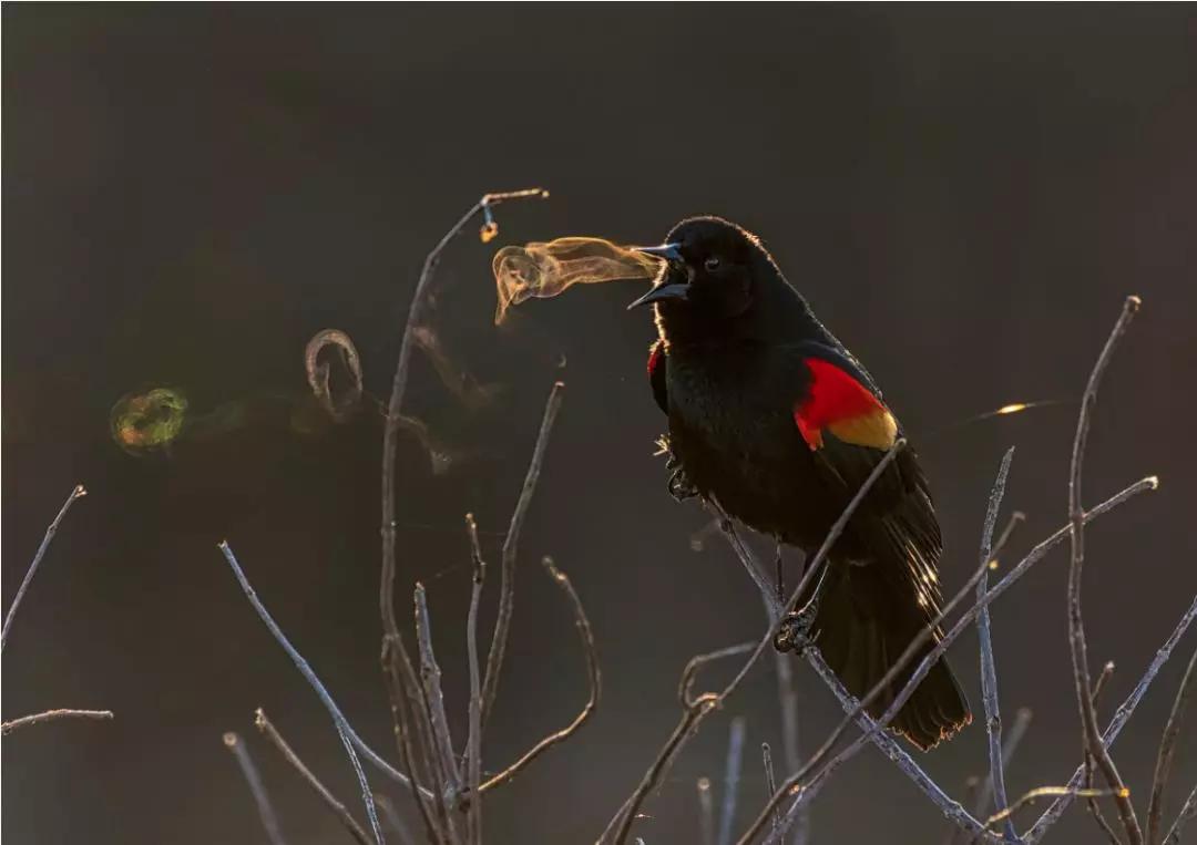 照片背后的故事:“每個(gè)寒冷的早晨我都會(huì)去我家附近的亨特利草地公園拍鳥(niǎo),因?yàn)槲蚁氩蹲进B(niǎo)叫時(shí)因呼氣所形成的‘煙圈’。