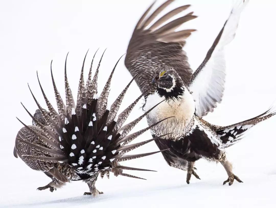 照片背后的故事:“我用了很多個(gè)春天寒冷的早晨來(lái)拍攝大艾草松雞求偶的場(chǎng)景。一開(kāi)始,照片中的這兩只競(jìng)爭(zhēng)者肩并肩地坐在一起,突然之間,它們仿佛收到了某種暗號(hào),開(kāi)始用翅膀向?qū)Ψ桨l(fā)起攻擊。這張?jiān)趫?jiān)硬的積雪地上抓到的照片,展示了大艾草松雞為了求偶打架時(shí)的力量?!?/span>