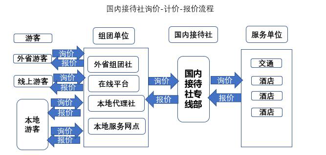 報價就有三種情況,一是接待社專線部給外省組團社專線部報價,專線部在向外省組團社服務網(wǎng)點報價,外省服務網(wǎng)點在向外省游客報價。二是接待社專線部給本地服務網(wǎng)點、本地代理商報價,服務網(wǎng)點和代理商再向本地游客報價。三是接待社專線給在線平臺報價,在線平臺給在線游客報價。