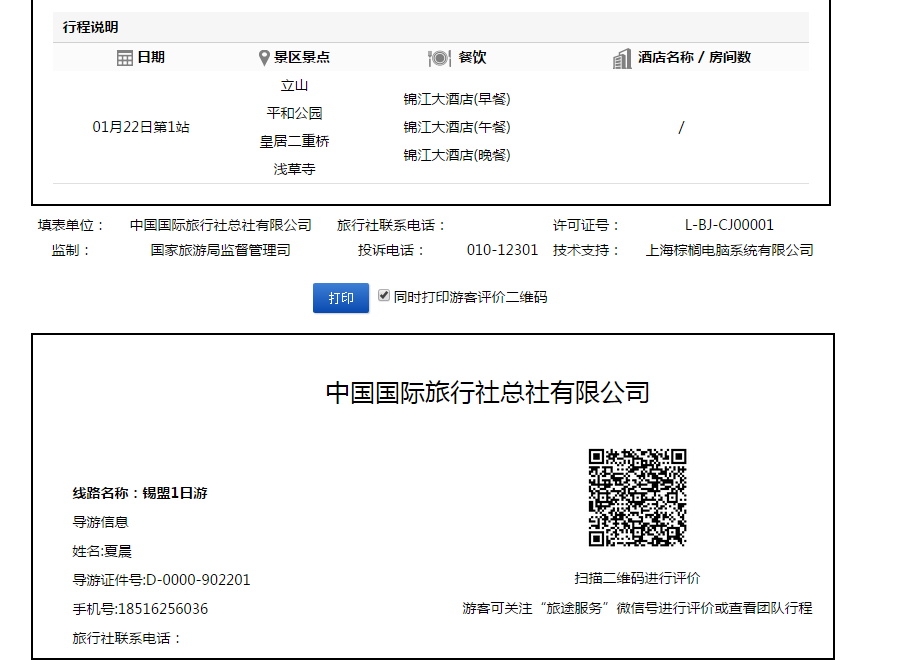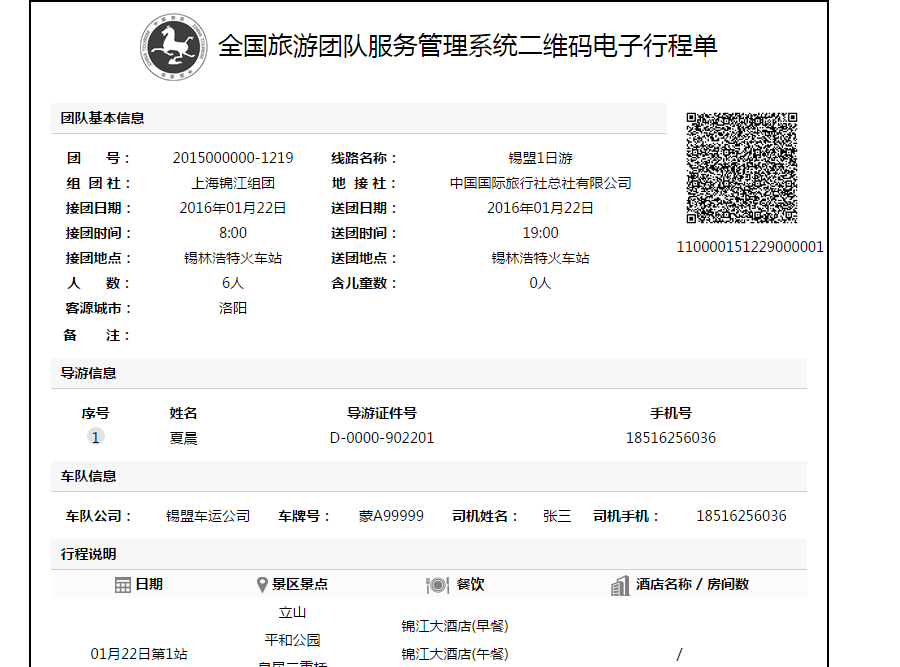 旅游團隊電子行程單