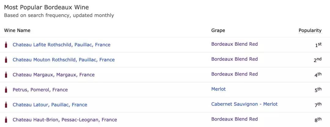 作為印證,5個(gè)一級(jí)莊的搜索量確實(shí)占據(jù)波爾多左岸的前5名。