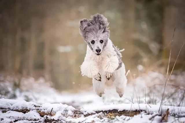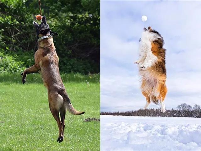 與跑步相比,這一題材相對(duì)簡(jiǎn)單,只需要狗主人/助手配合,發(fā)出讓狗狗跳起的指令就行——拿著玩具,樹(shù)枝,食物都可以。