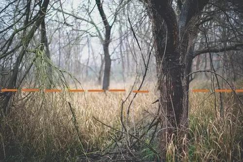 說到這里,作者還要給大家說明一下:所謂的地平線、水平線并不一定非要是肉眼很明顯的看到的一條線,它也可以是存在于攝影師腦子里的一條有意識的線條。比如,當(dāng)我們在拍攝樹林的時候,很難一眼就看到水平線,只能依靠一些參照物來體現(xiàn)。
